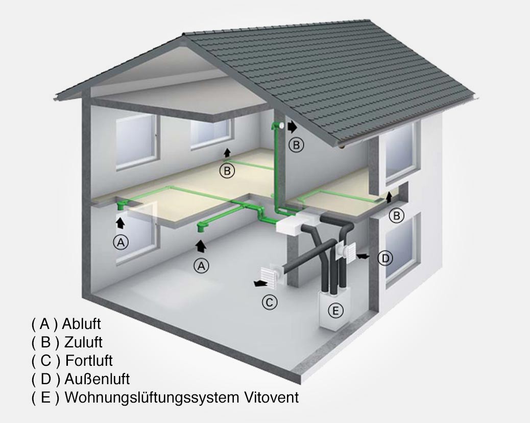 Das Lüftungsgerät Vitovent 300-W kann direkt mit der Regelung des Wärmeerzeugers verbunden werden.